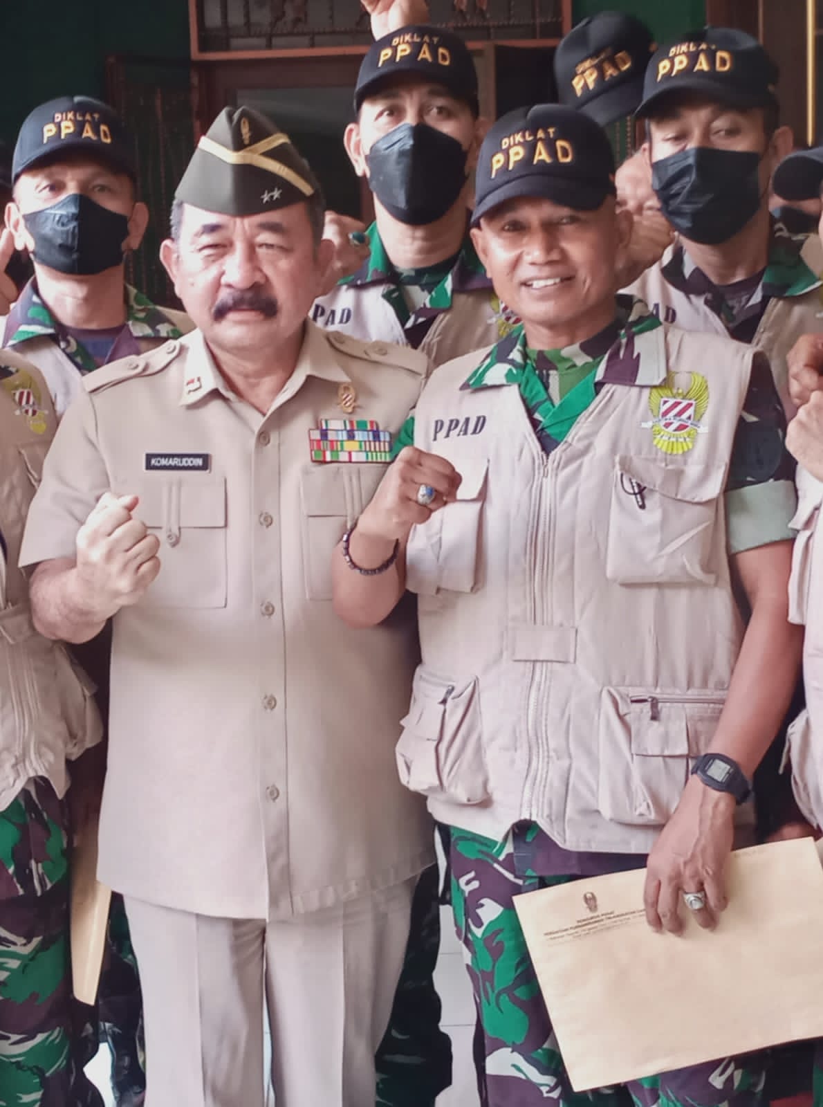 Tidak berhenti sampai di situ. Seorang sersan yang lain bahkan memposting fotonya bersama Sekjen Mayjen TNI Purn Komaruddin. Caption yang ia bubuhkan begini, “Alhamdulillah dan Terimakasih, kami dapat berfoto bersama bapak… ini kenangan yang sangat luar biasa dan menjadi motivasi saya pribadi dari apa yang bapak Jendral sampaikan. Semoga bapak sehat selalu dan sukses.”
