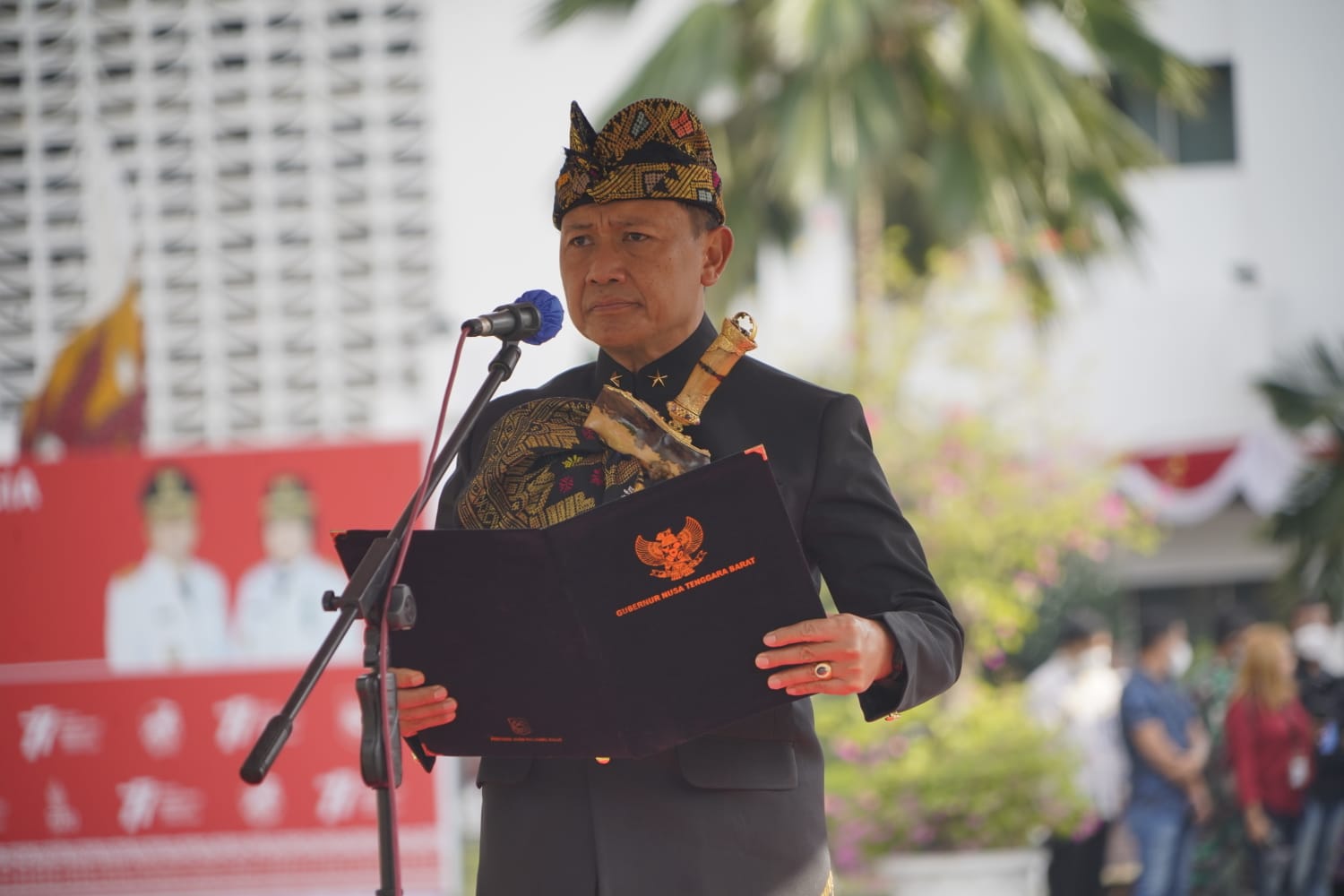 Inspektur Upacara Brigjen TNI Sudarwo Aries Nurcahyo dalam pembacaan amanat Upacara menyampaikan “seiring makin terkendalinya situasi pandemi covid-19, perekonomian kita mulai menunjukkan pemulihan. Walaupun, di tengah ancaman dan ketidakpastian global seperti tingginya inflasi di beberapa negara, kita masih mampu bertahan dengan memberikan hasil yang positif. Tak terkecuali di Nusa Tenggara Barat.