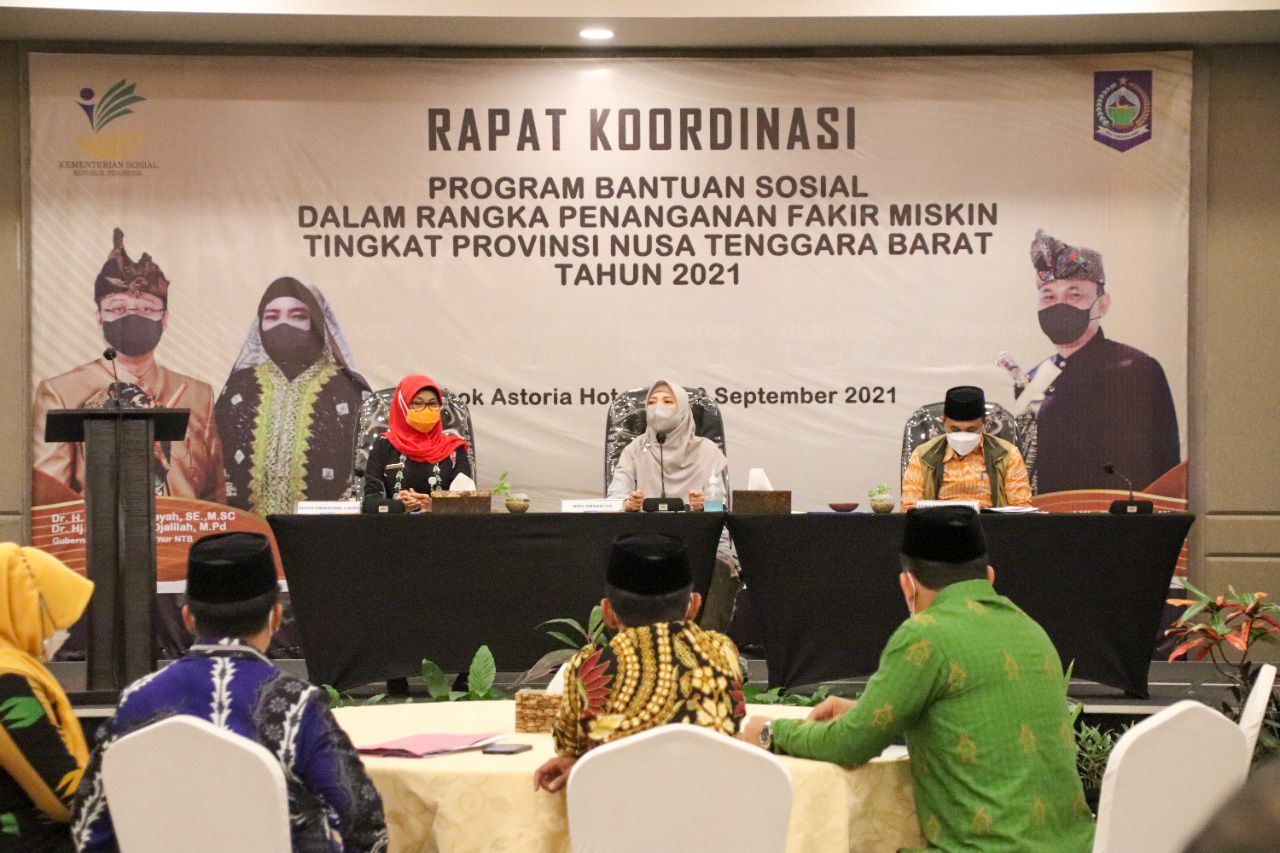 Hal tersebut disampaikan Wakil Gubernur Dr. Hj. Sitti Rohmi Djalillah pada Rapat Koordinasi Program Bantuan Sosial, dalan rangka Penanganan Fakir Miskin Tingkat Provinsi tahun 2021, yang diikuti  Bupati, Wakil Bupati dan Walikota se-NTB, Kamis (9/9/2021) di Lombok Astoria Hotel.