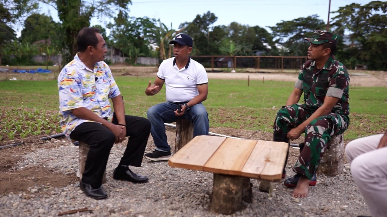Kolonel Arh GTH Hasto Respatyo, selaku perwakilan Kodam XVI/ Pattimura, mengendalikan langsung kegiatan di lahan kebun kerjasama antara Kodam XVI/ Pattimura dengan Fakultas Pertanian Unpatti di wilayah Rumah Tiga, Ambon, Sabtu (19/03/2022). Lahan kebun yang disiapkan pada tahap awal ini kurang lebih seluas 2 hektar. Dari kondisi awal semak belukar, saat ini telah diolah menjadi kebun sayuran dan sebagian yang lain siap ditanam serta sebagai lahan persemaian.