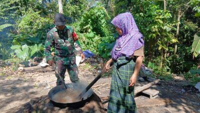 Untuk pekerjaan jalan ini, TNI dan pemerintah desa membuat jadwal giliran. Warga membagi diri setiap shif 25 orang. Dalam sehari ada 2 shif sehingga total warga yang ikut gotong royong sebanyak 50 orang. Kemudian, desa membuat giliran untuk 7 dusun, sehingga masing-masing dusun akan kebagian beberapa hari kemudian, tidak gotong royong setiap hari.