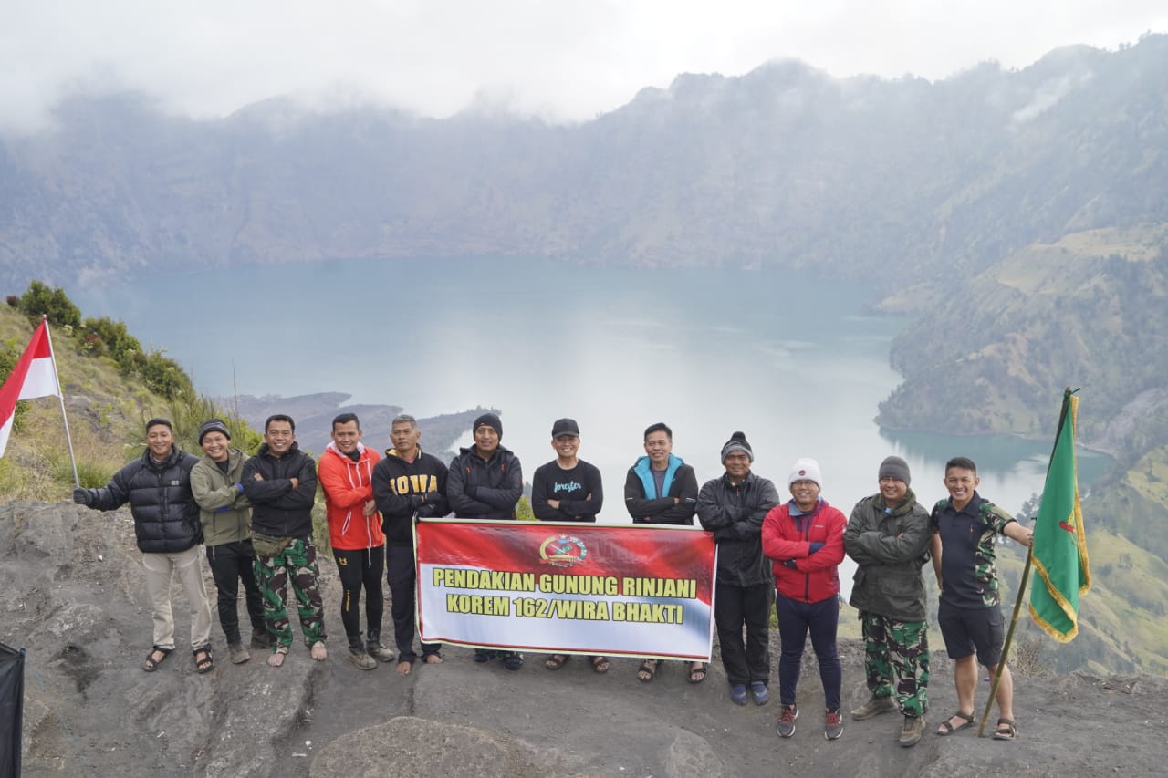 PERJALANAN rombongan Danrem 162/WB/Bersama Para Pejabat setingkat Kasi, Dandim, Pasi dan Prajurit pada hari Jum’at 12/8 Pendakian Puncak Gunung Rinjani berjalan sukses sesuai harapan.