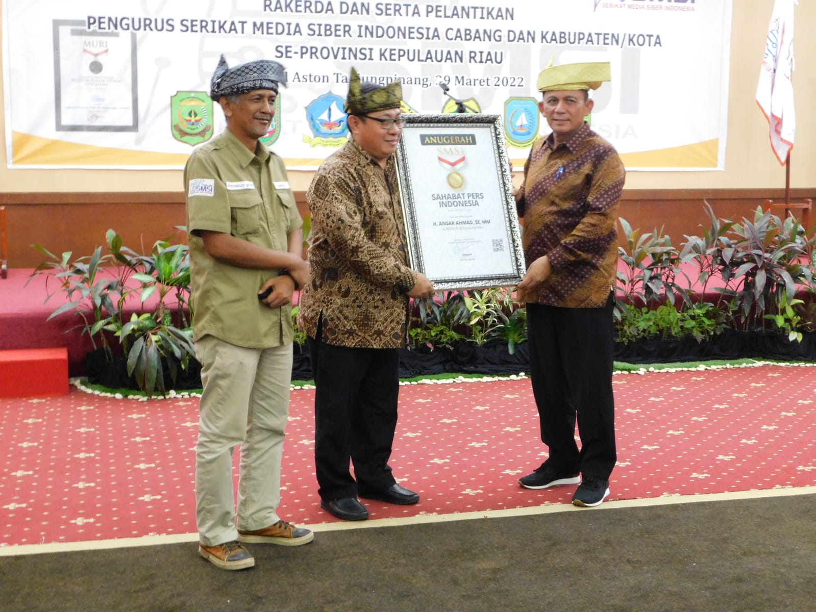 Ketum SMSI Firdaus melantik pengurus SMSI Kepri memberikan Anugrah Sahabat Pers Indonesia kepada Gubernur Kepri Ansar Ahmad sebagai gubernur yang peduli dengan pers.