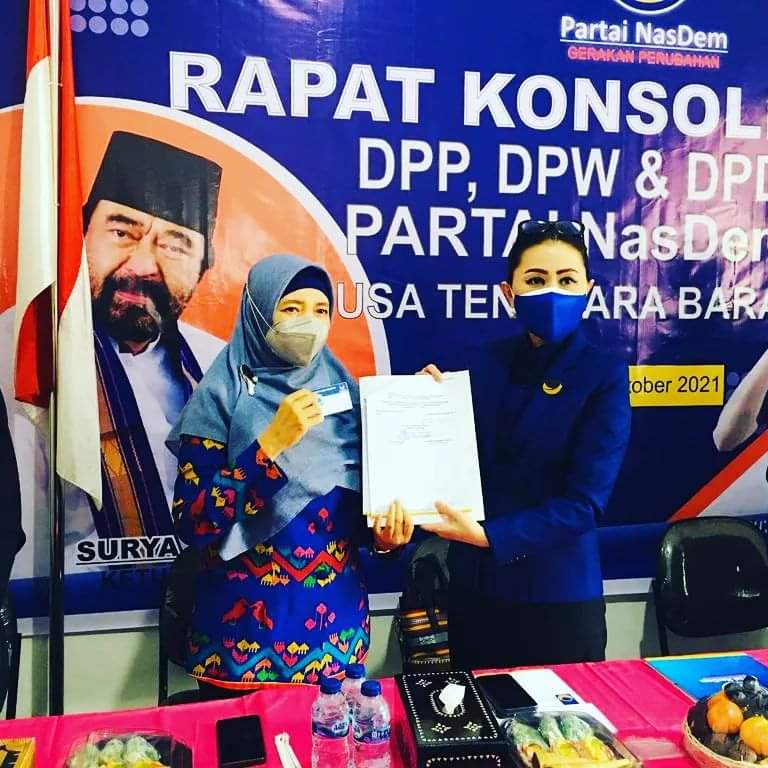 Itu ditandai dengan diserahkannya SK sebagai Ketua DPW Partai NasDem NTB oleh Koordinator Bapilu Bali Nusra Partai NasDem, Julie Laiskodat kepada Dr Ir Hj Sitti Rohmi Djalillah, di kantor DPW Partai Nasdem NTB, Sabtu sore (2/10). (has)