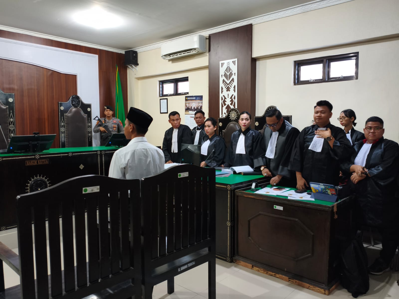“Terdakwa digendong oleh teman-teman kuliahnya yang ikut mencari. Saya mengikuti dari belakang. Saat itu terdakwa masih bisa berdiri tanpa bantuan,” ujarnya.