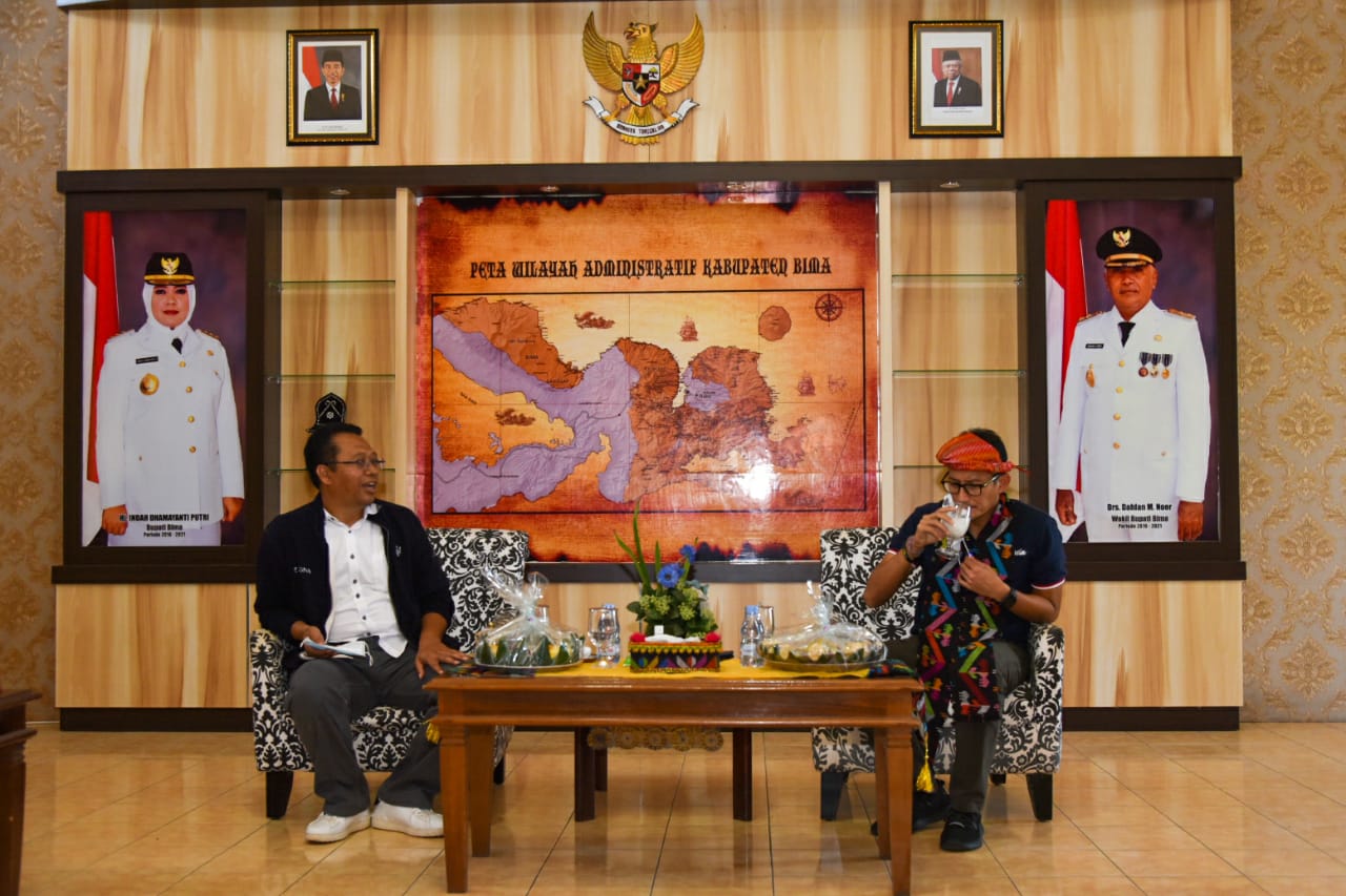 Gubernur Nusa Tenggara Barat, Dr. H. Zulkieflimansyah, SE, M. Sc mengajukan program pengembangan Geopark Tambora Pulau Sumbawa langsung kepada Menteri Pariwisata dan Ekonomi Kreatif (Menparekraf) RI, Dr. H. Sandiaga S. Uno, BBA, M.BA, saat kunjungan ke Bima, Minggu (14/06/2021).